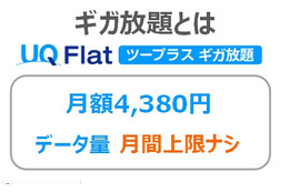 UQコミュニケーションズは15日、WiMAX 2+の新料金プランとして、月額4,380円(税別)で月間上限なく使い放題になる「UQ Flatツープラス ギガ放題」を発表した。2月20日より提供を開始する。