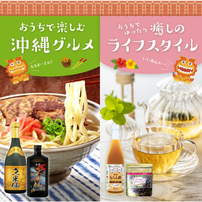 2つ目は「おうちでゆったり癒しのライフスタイル」と題して、沖縄県産の無農薬ハーブティーと沖縄が誇る天然健康飲料「もろみ酢」のお取り寄せセットをご用意。今の時節に合ったカラダに優しい癒しの内容となっています。