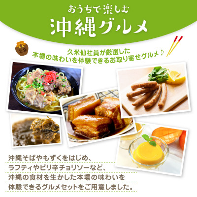 本場沖縄の味わいをご自宅でカンタンに再現できる沖縄そばセット(ソーキ肉・三枚肉トッピング付き)をはじめ、伝統的な琉球料理ラフティ、人気の沖縄食材であるもずくや濃厚マンゴープリン、島とうがらしを使ったピリ辛ウインナー琉球チョリソーなどなどをご用意。さらに、料理の美味しさをより引き立ててくれる泡盛飲み比べ2本セットも合わせて、特別価格&送料無料でのご提供となっております。