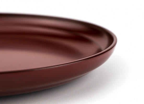 赤色で中塗りした上から半透明の黒色で上塗りをすることで、透漆を通して赤色が透けて見える塗り方を溜塗(ためぬり)と言います。