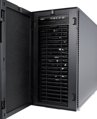 Convallis-1810BLシリーズは、LGA-2066ソケット[R4ソケット]48レーンXeon W-2200/2100シリーズCPUを、水冷式クーラーにより冷却する静音ワークステーションです。3.5インチ/2.5インチ両用ベイに6台のHDD/SSDと2.5インチSSD専用ベイに2台までのドライブが実装可能で、フロント-ドアは左右両方向に開閉可能です。
