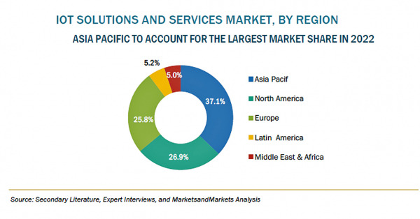 IoTソリューションおよびサービス市場は、2022年の2,431億米ドルからCAGR18.8%で成長し、2027年には5,750億米ドルに達すると予測されています。IoTソリューションおよびサービス市場は、新技術の進化やデジタル施策の導入・拡大により、急速な成長が見込まれています。