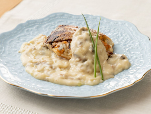■太刀魚の蒸し煮 きのこクリームソース