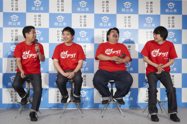 イベント冒頭、ウエストランドさんと空気階段さんそれぞれが出演する「岡アツ!」第一弾PRムービーがお披露目され、伊原木知事は、「とにかく今、岡山の文化や芸能人、スポーツ選手が活躍する『岡山旋風』が吹き荒れています。そこで、この度、『岡アツ!』と題して、岡山をPRしていきます」と今回の取り組みの趣旨を説明しました。その後、「岡アツ!」PRムービーに出演した、ウエストランドさんと空気階段さんが登壇。ウエストランド井口さんは「二人とも岡山県出身ですし、こうやって岡山県知事の隣でPRできて嬉しいです」とコメント。対して、岡山市出身の空気階段の水川かたまりさんも、「相方(鈴木もぐらさん)は千葉県出身なので、切り捨てる勢いで…僕に岡山県の盛り上げ役を背負わせてほしいです!」と強い岡山への愛をアピールしました。続けてPRムービーの感想や注目してほしい点を聞かれたウエストランド井口浩之さんは、「全編、僕だけが活躍している映像になっていまして、韻を踏みながら岡山の名産やいいところを歌う、素敵なリリックになっています」とコメント。空気階段のもぐらさんは、「岡山での結婚式という設定で心があったまるような。まるで九十九里の海のようなと…」と、PRムービーの設定を岡山県ではなく自身の出身地である千葉県の海に例えるボケで会場の笑いを誘いました。