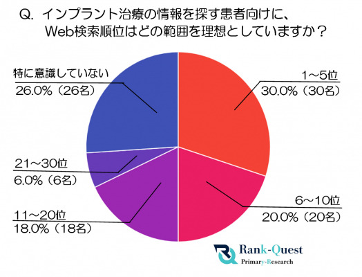 ・アンケートによると、68%の歯科医院が「検索結果 1~20 位程度に入れば理想に近い」と回答しました。