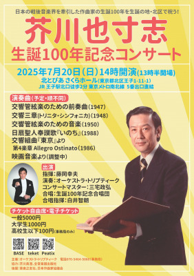 生誕100年の作曲家・芥川也寸志を特集するコンサートを開催(東京都北区:7/20)