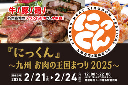 一般社団法人九州観光機構(会長:唐池恒二、以下当機構)が中心となり構成する「にっくん九州お肉の王国まつり実行委員会(委員長:唐池恒二)」は、九州各地の「ブランド肉」を博多に集結した、『にっくん』~九州お肉の王国まつり2025~を、2025年2月21日(金)~2月24日(月・振休)の4日間、JR博多駅前広場で開催します。