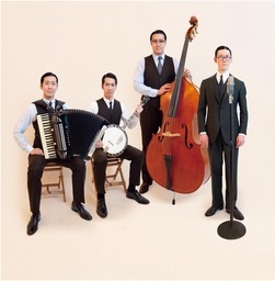 東京大衆歌謡楽団は、唄・髙島孝太郎、アコーディオン・髙島雄次郎、 ウッドベース・髙島龍三郎、バンジョー・髙島圭四郎による4人兄弟ユニット。