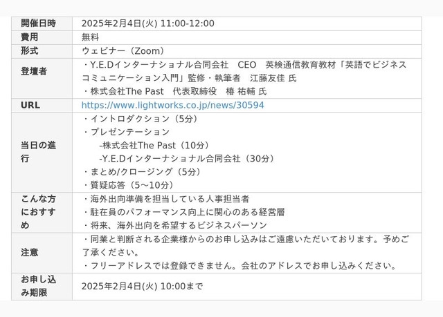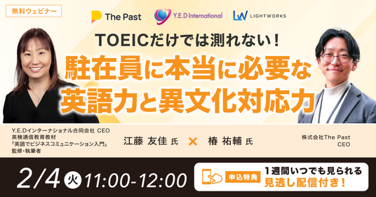 駐在員のビジネス英語における課題を解決したい・活躍を推進したいご担当者様必見のウェビナーです。この機会にぜひご参加ください。