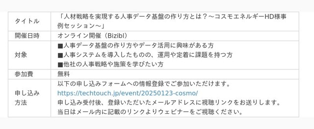 お申し込みはこちら:https://techtouch.jp/event/20250123-cosmo/