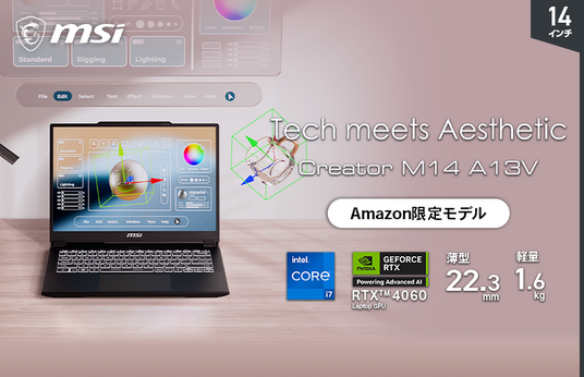 ・Creator M14 A13V 製品ページ:https://jp.msi.com/Content-Creation/Creator-M14-A13VX