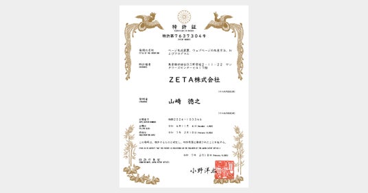 なお本特許に登録された発明は、先日発表した『ハッシュタグ活用エンジン「ZETA HASHTAG」が新たに特許査定通知を取得~生成したハッシュタグをWebページに挿入する技術~(※)』と同様の内容であり、この度正式に特許を取得いたしました。