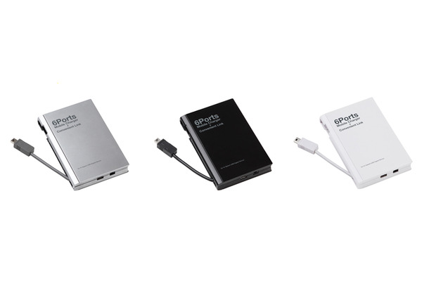同製品は、PC接続用のミニBコネクタ(メス)のほかに、Aコネクタ×6ポートおよびミニBコネクタ(オス)×1ポートを装備したUSBハブ。付属のワールドワイド対応ACアダプタを利用することで、PCの電源が切れた状態でも、接続しているデバイスに電源供給が行える。