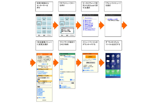au携帯でドコモ・SBのメニューが利用可能に〜「メインメニュー着せ替えサービス」がスタート