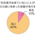 また、「ムダ毛処理ができていないことが原因で男性からの誘いを断った経験がありますか?」には、10人に1人が「ある」と回答。「ムダ毛を理由に彼氏と気まずくなった」という経験がある人からは、「脚がざらざらするから、という理由で彼氏から一緒に寝るのを断られ、ショックだった」(28歳・企画職)、「一緒にお風呂に入った時に指摘された。そして、彼氏に剃ってもらった・・・なんかむなしかった」(31歳・大学職員)といったコメントも寄せられた。