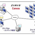 「Ziris Canvas」は、スクリーンレイアウトから、コンテンツ配置・配信のスケジューリング、映像配信、システムの監視にわたる一連の作業に必要な各種専用ソフトウェアと、「プレイステーション3」(PS3)とで構成された製品。11月30日より発売で、 市場推定価格は75万円前後(税抜)。