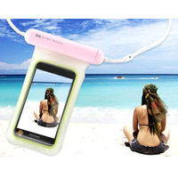 ケースの上からスマートフォンのタッチ操作が可能。バッテリは単4形×3本で、別途ストラップを用意して首などのぶらさげに対応するストラップホールを備えた。