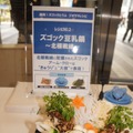 実際に試食してみると、ひと口めはバニラの味が口に広がり“甘い”と感じるが、ふた口めはおとうふの味もしっかりとあり、ヨーグルトを食べるような感覚でおとうふを食べることができた。