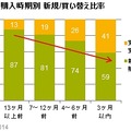 これを受け、アンケートを行ったところ、タブレット端末の購入者のうち、新規購入の割合は減少傾向にあり、3か月以内の購入では6割を下回っていることが明らかとなった。一方でタブレット端末使用者の4人に1人は「1年以内の購入を検討している」と回答しており、買い替え/買い増し需要は今後も高まると推測されている。