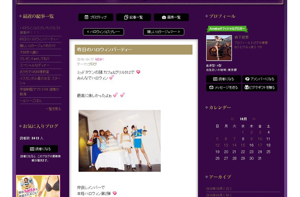 その後公開した記事、「ハロウィンコスプレ リクエスト募集中!!!」でも、そのセクシーすぎるコスプレ写真を余すことなく公開。「次は何にしよぉかな まだまだ今年のハロウィンはこれからです」「アイディア リクエスト お待ちしてます」と、今年のハロウィーンはまだまだ終わっていない様子。