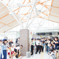 最初の挨拶では、詰めかけた大勢の報道陣を前にとても緊張した面持ちで、今回のイベントの趣旨と「怪しい電話には出ないようにして」と詐欺防止への注意を喚起。チラシ配布中は、最初こそ若干こわばった表情だったが、地元の人との触れ合いに徐々に笑顔を取り戻し、その後は満面の笑み。最後、この日一緒に頑張った児童たちに桜井さんからお礼を手渡すときには、子どもの目線までしゃがみ込み、ひとりひとりに「ありがとう」と微笑みながら感謝を伝えていた。