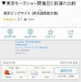 「混雑レーダー」は、現在の混雑度とヒートマップ上での過去3時間分の混雑度推移がわかる機能。今回提供を開始した「混雑グラフ」は、さらに、当日1日分の混雑度推移が折れ線グラフで確認できるようになった。さらに、前週同日との混雑度比較も可能となっている。