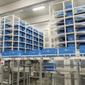 今回の刷新により導入されたのは、最先端の物流システムである「FRAPS(Free Rack Auto Pick System)」と「マージソータ」の2点。これらにより、配送業務全体の作業効率が3割向上する。それに伴って物流コストが削減され、また、物流工場からauショップへの配送リードタイムの短縮に繋がる。東日本主要都市のauショップに対しては、当日配送が可能となる。
