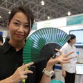 詳細は写真を見てもらうのが早いが、ロゴ入りボールペン、付箋などではないグッズでは、USBメモリ、ケーブル類、扇子、飲み物などさまざまだ。PCメガネ、マグカップなど実用的なものもあった。