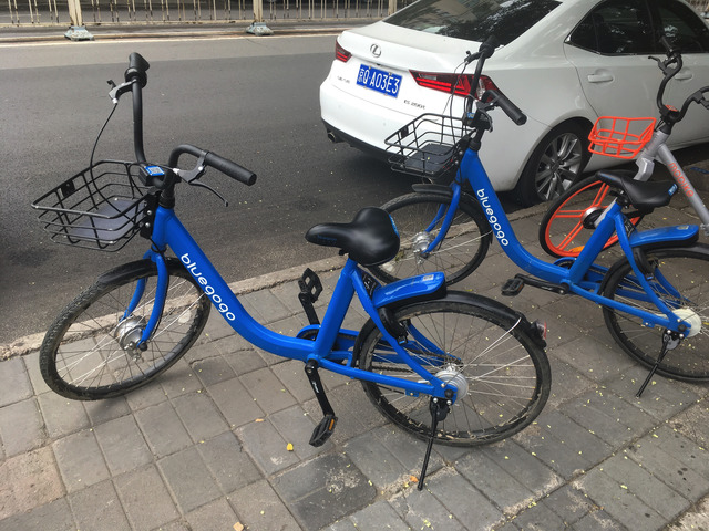 中国では現在、様々なカラーリングのシェアサイクルが街中のあらゆる場所(主に路上駐輪)で見られる。