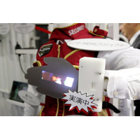まず装着スタイルだが、イメージ写真を見ればわかる通り視力矯正が必要なユーザーでも使いやすいように、メガネをかけた上から装着できる「オーバーグラススタイル」をプロトタイプから踏襲した。オーバーグラススタイルにこだわる理由は座安氏がこう説明している。「プロトタイプの発表後にBtoBでの引き合いを多くいただきました。工場での作業、商業施設などのディスプレイとして使うことを考えた場合、不特定多数の方が手軽に使い回せるオーバーグラスタイプのフレーム形状が有利です」。なるほど理にかなっている。