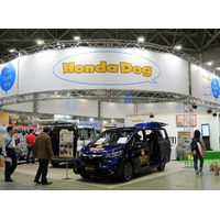 ホンダアクセスのペット用純正アクセサリー商品は、ブルーにカラーリングされていましたが、今回はグレーの試作品を展示。お客様の反応しだいでは、商品化の可能性もあるとのこと。私は従来の青色のアクセサリーを愛用していますが、このグレー色はクルマのインテリアにもマッチしそうで、とても気に入りましたね。