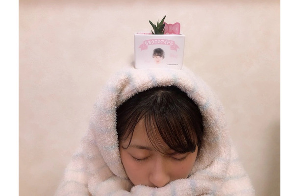 最後は、「さぼてーーーーん。ままに乗せられた。笑」と、ももクロのアイドルと書かれた小さなサボテンを頭の上に乗せたお茶目な写真も公開しブログを締めくくった。