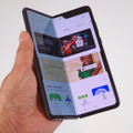 Galaxy Foldは折りたたみ時には4.6インチのディスプレイを持つスマートフォンとなる。ディスプレイ周囲のベゼル部分は広く、最近のスマートフォンとはイメージが異なる印象を受ける。閉じたときの大きさは160.9 x 62.9 x 15.5。