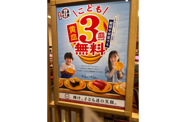 スシローは、「大創業祭2022」の第3弾として、小学生以下対象で、黄皿3皿相当額が無料となるキャンペーンを開催中だ。