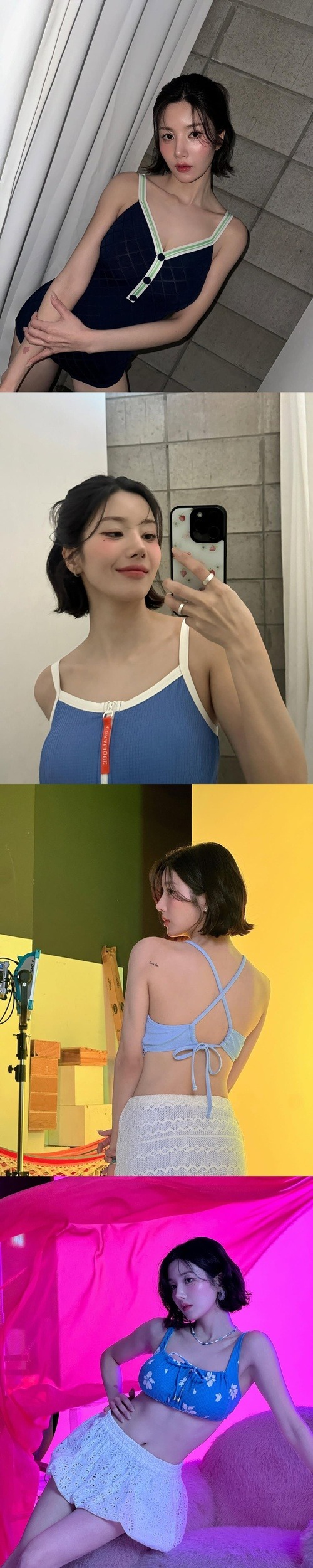 写真のなかのクォン・ウンビは、さまざまな色や形のスイムウェアを着用しながらポーズを取っている。胸元や背中など、グラマラスな体型を大胆に見せ、人々の視線を釘付けにした。