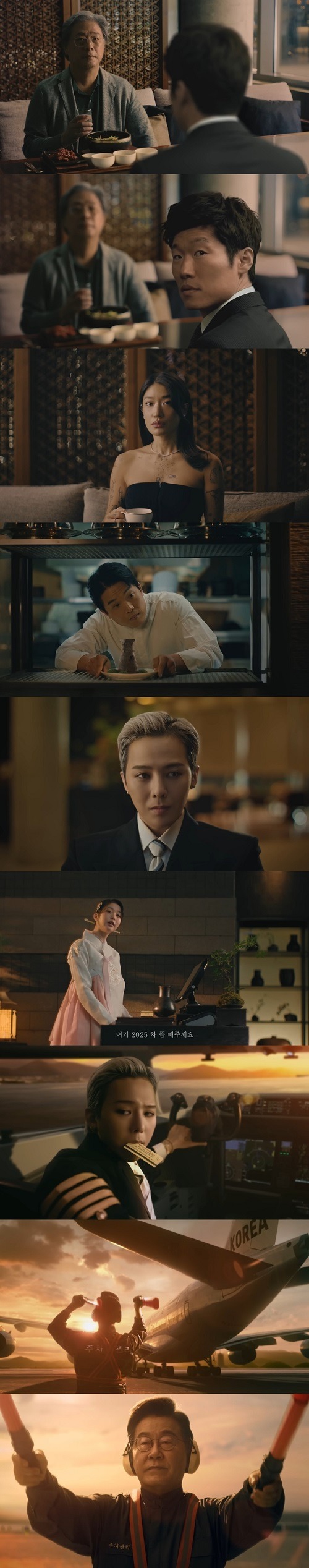 韓国料理店にパイロット姿のG-DRAGONが現れ、APEC加盟国のパイロットたちと出会う場面から始まる。G-DRAGONが着席し、「Welcome to APEC」と口にした瞬間、韓服を美しく着た店員のウォニョンが「ここ2025番、車をどかしてください。2025!」と叫ぶ。