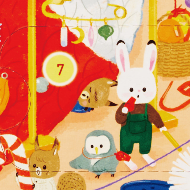 価格は税込3483円(本体価格3225円)。アドベントカレンダー専用袋に入れて届ける。お一人様10個までの購入制限がある。今年のイラストテーマは「待ち遠しいクリスマス!みんなで靴下を編もう!」。裁縫道具を使ってクリスマス支度を楽しむ動物たちが描かれている。