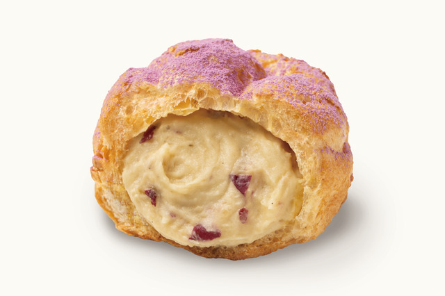 同作は、ビアードパパ自慢のサクサク食感のシュー生地の中に、ほくほくとした食感と上品な甘さが特徴のさつまいも「なると金時」を皮ごと使用し、特製カスタードを合わせたお芋クリームを詰め込んだ。まるで焼き芋をそのまま食べているかのような濃厚な味わいが楽しめる。仕上げにシュー生地の表面を紫芋のパウダーであしらい、見た目も鮮やかに彩る。