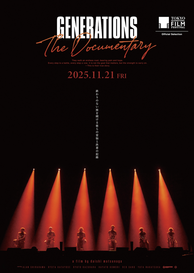 映画では昨年新体制となったGENERATIONSが、様々な不安や葛藤を抱えながら新たなスタートを切る瞬間や、昨年行われたアリーナツアー『GENERATIONS LIVE TOUR 2024 “GENERATIONS 2.0"』の公演毎に変わっていく心境の変化が収められており、今まで誰も見ることのなかった彼らのリアルな表情が描かれた作品になっている。全国5都市で公開予定。