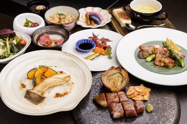 食べ放題コースは「【ランチ限定】A5黒毛和牛ステーキコース」(7,480円)をはじめ、「A5黒毛和牛霜降肉と赤身肉のステーキコース」(1万1,880円)、「A5黒毛和牛ステーキとあわびの鉄板焼コース」(1万4,080円)、「A5黒毛和牛霜降肉と赤身肉のステーキと飲み放題コース」(1万4,300円)などがラインナップ。