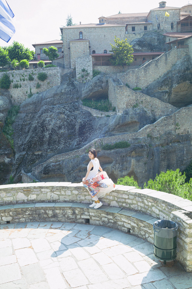 写真集の撮影そのものについては「アテネでは地下鉄やトラムで移動しながら撮影をしたので、良い意味でロケという感じではなく、気心の知れた人たちと旅をしているような感覚で、限りなく素に近い私が写っているんじゃないかなと思います。メテオラまでは電車とバスを乗り継いで5時間かけて行ったんですけど、長距離列車の一両が映画で見て憧れていた食堂車だったのがうれしかったですね。その時、ギリシャコーヒーを初めて飲んでみました。普通のコーヒーは挽いた豆にお湯を注いで淹れますけど、ギリシャコーヒーはカップの底に豆の粉があって、直接お湯を入れるんです。なので、飲んでいくにつれて苦味が増していくっていう…。でも、おいしかったです! それと、メテオラのふもとの街・カランバカにも泊まったんですが、ホテルのベランダから見えるメテオラの山々が圧巻で、その山に登った時には奇岩越しに沈んでいく夕陽を眺めることができて、とても贅沢だなと感じました。メテオラの修道院の中は撮影禁止だったんですけど、独特の造りやスケールの大きさを目の当たりにして、『自分はどこにいるんだろう…?』と不思議な気持ちになったりもしました。衣装と髪型もいろいろなパターンに挑戦していて、それもあって何だか自分じゃないような、知らない自分を見るような感覚もあったのかなって思います」と振り返った。