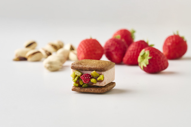 「苺のキャラメルピスタチオ」は、寒い季節にいっそう甘みを増す苺を主役に、ほろ苦いキャラメルソースとピスタチオの香ばしさを組み合わせた、冬ならではのリッチなスイーツだ。苺のフレッシュな酸味がバタークリームに溶け込み、後味は軽やかでありながら深い余韻が楽しめる。