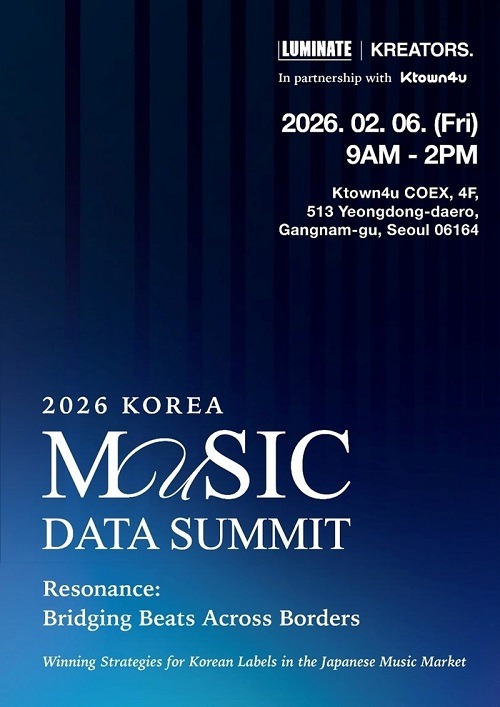 グローバル音楽データ分析企業「Luminate」と、韓国市場における独占パートナーである「Kreatorsnetwork」は、来る2月6日午前9時、ソウル・COEX Ktown4uにて「2026 コリア・ミュージック・データ・サミット」を共同開催する。