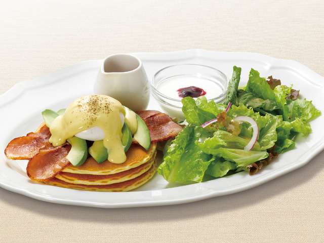 軽食にもおすすめの「海老とチキンのマカロニグラタン」や、ブレックファスト限定メニューの「エッグベネディクトパンケーキ」も登場する。