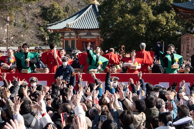 大東は「『豊臣兄弟!』では、2月1日の放送で前田利家が初登場だったんです。このタイミングで節分会に参加できて、新年早々おめでたい、ありがたい時間を過ごせました。豆まき会場では、皆さんがすごく待ってくださっていたことが伝わって、できるだけ飛距離を伸ばして遠くの方にも届くようにまこうと思いましたね。受け取った方が、この1年を幸せな気持ちで過ごしていただけたらうれしいです」と話した。