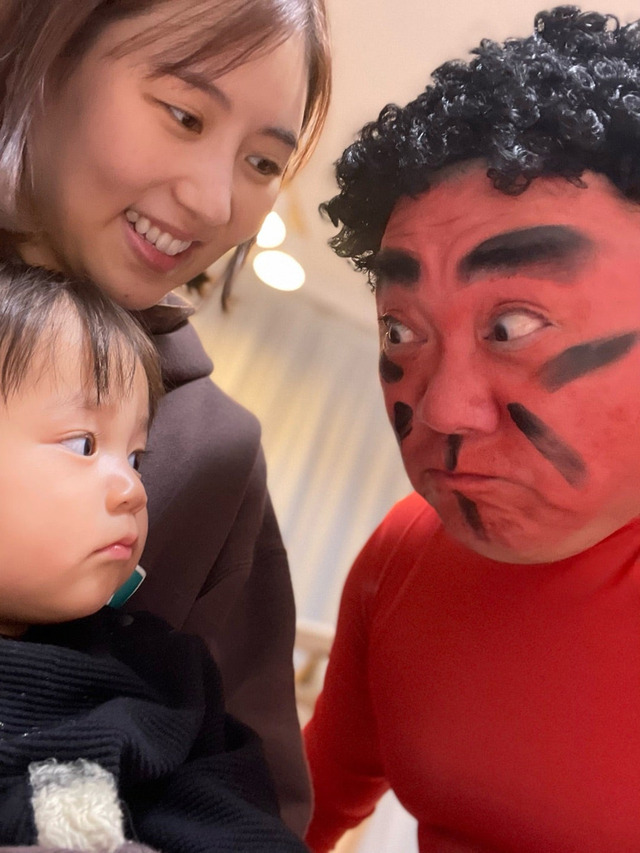 一方、1歳の長女・にこりちゃんの反応はというと、山本が期待した“にっこり”とはいかず。「微妙な感じになってしまいました」「にっこりにならない にこりさんです」とつづり、赤鬼姿の山本を前にどこか落ち着いた表情の娘と、優しく見守る西野を写した家族ショットも披露。「終始こんな感じでしたとさ」と当時の様子を明かしている。