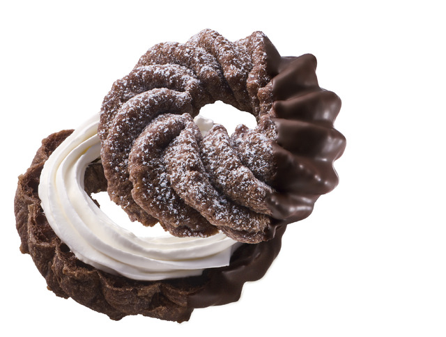 「エンゼルショコラ」は、ミルクチョコ風味のふわっと軽いショコラフレンチ生地に、ホイップクリームをサンドし、チョコレートをコーティングした。価格はテイクアウト194円、イートイン198円だ。