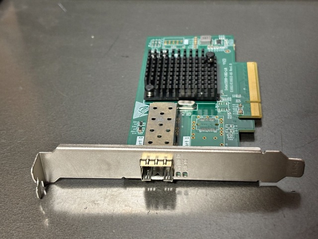 サブPC(PC③)には、Intel 82599を搭載する10ギガ対応LANカード「X520‑DA1」(バルク品)を増設している。放熱用ヒートシンクは比較的小型だが、Sさんの環境では冬場の長時間運用でも37℃前後で推移しており、追加の冷却ファンなしで運用できているという。インターフェースはSFP+で、RJ‑45とは異なり、規格に合ったトランシーバーと光ファイバーケーブル(またはDACケーブル)を用いてスイッチと接続している。