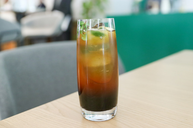 混ぜずにそのまま一口飲むと、トニックウォーターと柑橘の香りが合わさった爽やかな味わいの中に、コーヒーの苦味がアクセントとして立ち上がる。不思議とキャラメルの甘い香りは強く主張せず、すっきりとした飲み口が印象的だった。