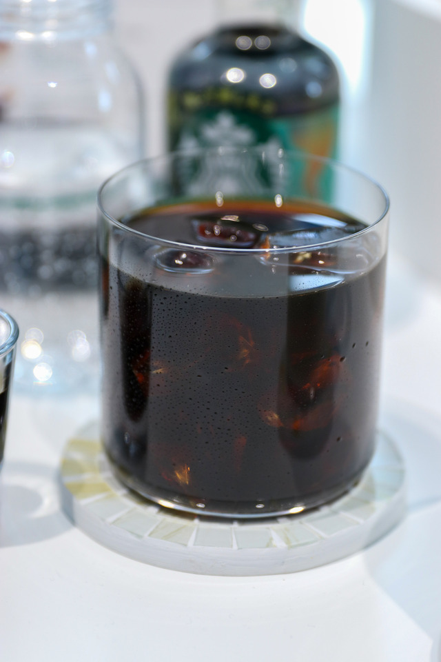 体験会では、基本のアレンジレシピを4つ紹介。まずは「アイスアメリカーノ」だ。無糖のコーヒークラフトを使い、氷の入ったグラスに1杯分注ぎ、その上から水を足して完成する。シンプルながら、コーヒーの香りとすっきり感を楽しめる一杯だ。